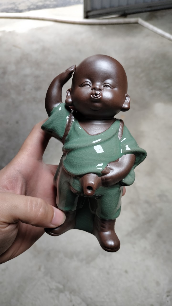 Tượng em bé đứng tiểu với hình ảnh của một chú tiểu trông rất hồn nhiên và đáng yêu. Sản phẩm được làm bằng gốm nung nên độ bền rất cao. Phù hợp với việc dùng làm tượng trang trí tiểu cảnh. Ngoài ra sản phẩm đi kèm còn có một chiếc lọc trà nên rất tiện lợi khi dùng để uống trà. Mọi bả chè đều được lọc qua màng lọc bằng inox này.