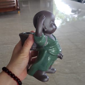 Tượng em bé đứng tiểu với hình ảnh của một chú tiểu trông rất hồn nhiên và đáng yêu. Sản phẩm được làm bằng gốm nung nên độ bền rất cao. Phù hợp với việc dùng làm tượng trang trí tiểu cảnh. Ngoài ra sản phẩm đi kèm còn có một chiếc lọc trà nên rất tiện lợi khi dùng để uống trà. Mọi bả chè đều được lọc qua màng lọc bằng inox này.